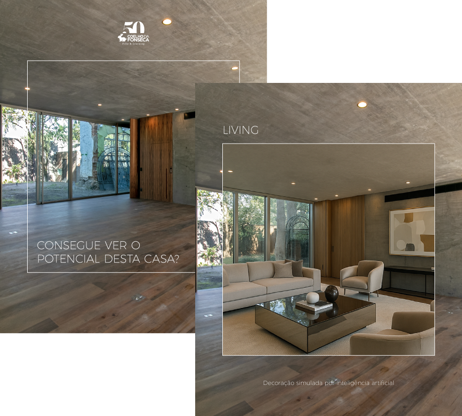 Pensando nisso, usamos inteligência artificial para transformar espaços vazios, datados ou no contrapiso em ambientes atraentes — ampliando o repertório de divulgação da Coelho da Fonseca e reforçando sua posição como referência no setor.